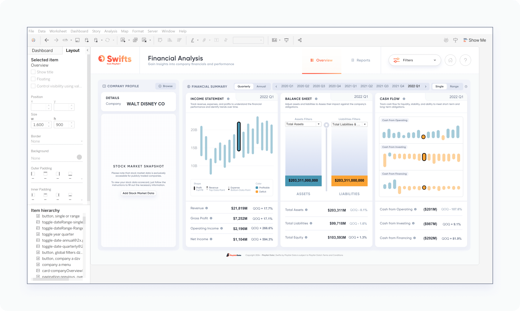 Third, there are several more technical and user experience features that really allow you to build just about any visual analytics tool imaginable directly in Tableau. These include dashboard actions like URL actions that allow you to send data to other applications, the VizQL language that makes it much easier for non-coders and SQL experts to adopt the software, and layout settings that allow you to design dashboards down to the pixel.