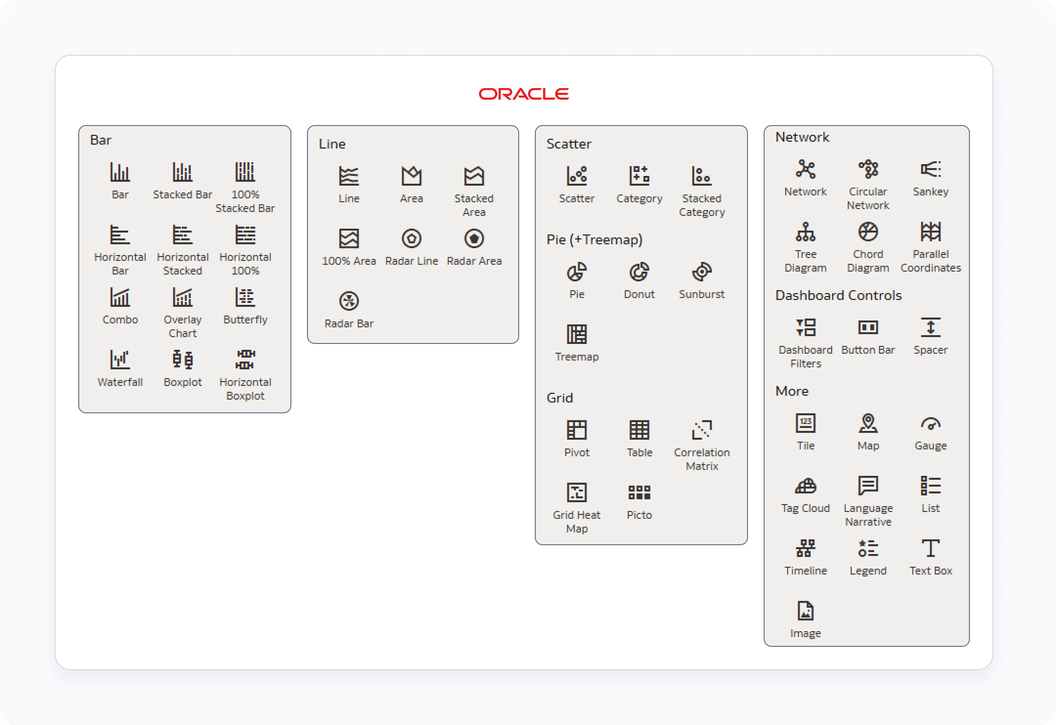 Oracle Analytics Cloud contains the most out-of-the-box data visualization options with 47 different options!