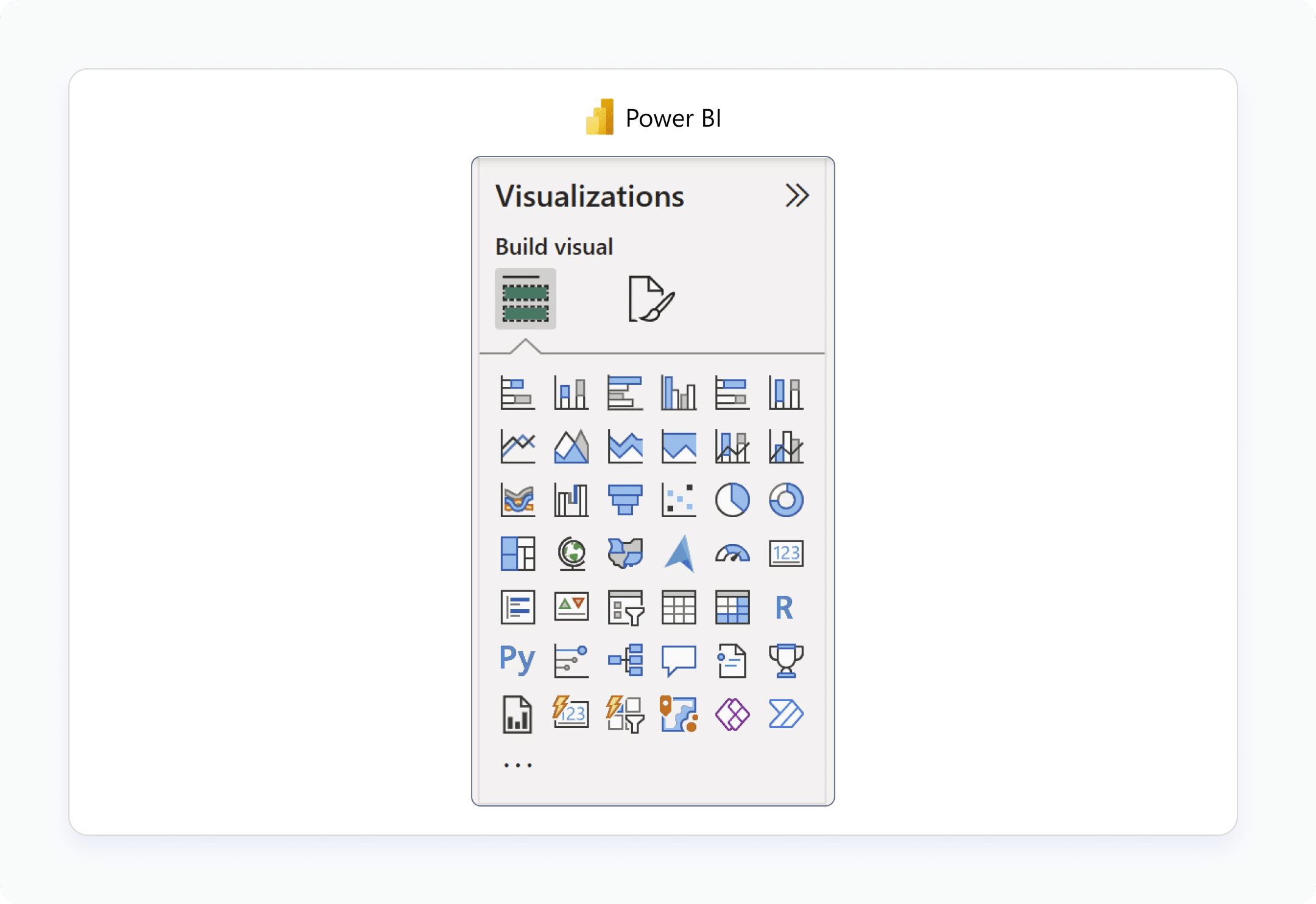 Power BI has a similar functionality that allows you to choose 37 distinct chart types or access additional visualizations through an IDE (Integrated Development Environment) or Microsoft’s proprietary VS (Visual Studio) Code.