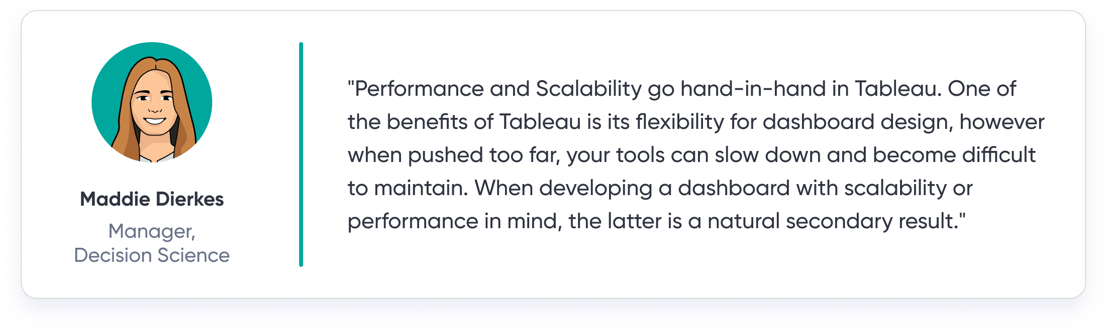 In the context of visual analytics, performance refers to how quickly views load initially and after queries are kicked off to load data for analysis. With any of the leading BI tools today, you’ll find they are going to be built to meet the needs of an enterprise in terms of the number of data sources to which they can connect, how many records the querying can be scaled up to load, and how quickly stakeholders receive a response when clicking around. Further, efficiency can be a subjective term when it comes to performance. Some stakeholders will get frustrated waiting three seconds for a business-changing insight to load. Others may find it reasonable to wait even sixty minutes if it means that the hour will pay for itself exponentially in the insight the tool is delivering.